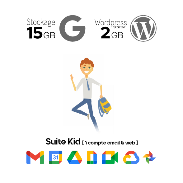 - Un compte Google Workspace incluant un email personalisé @bilbao.fr sur la plateforme Gmail. Stockages (15Gb, 30Gb, 150Gb ou 500Gb)