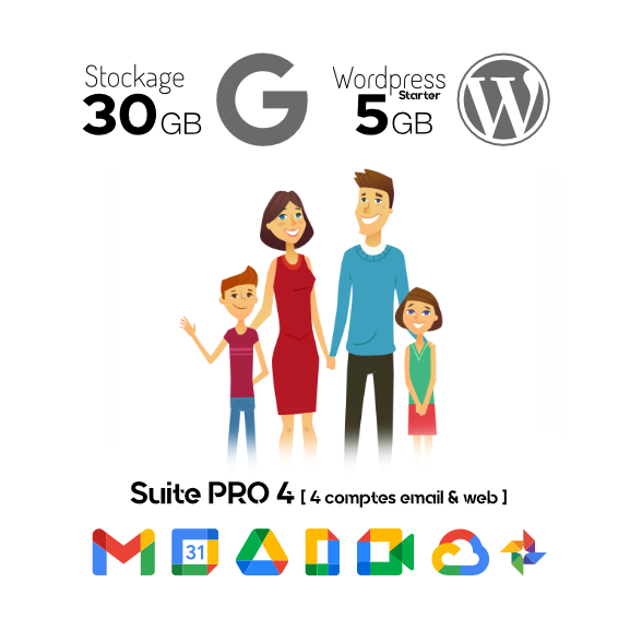 - Quatre comptes Google Workspace incluant quatre emails personalisés @bilbao.fr sur la plateforme Gmail. Stockages (15Gb, 30Gb, 150Gb ou 500Gb)