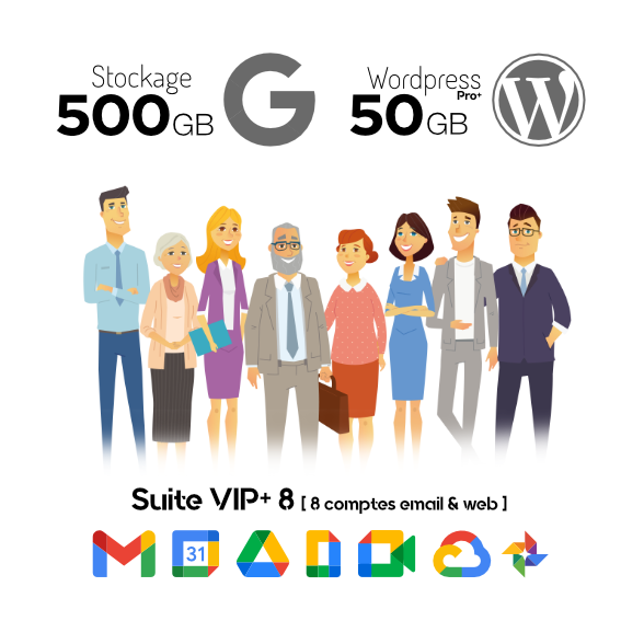 | Stockage | Perso 15Gb, Pro 30Gb, VIP 150Gb, VIP+ 500Gb |
